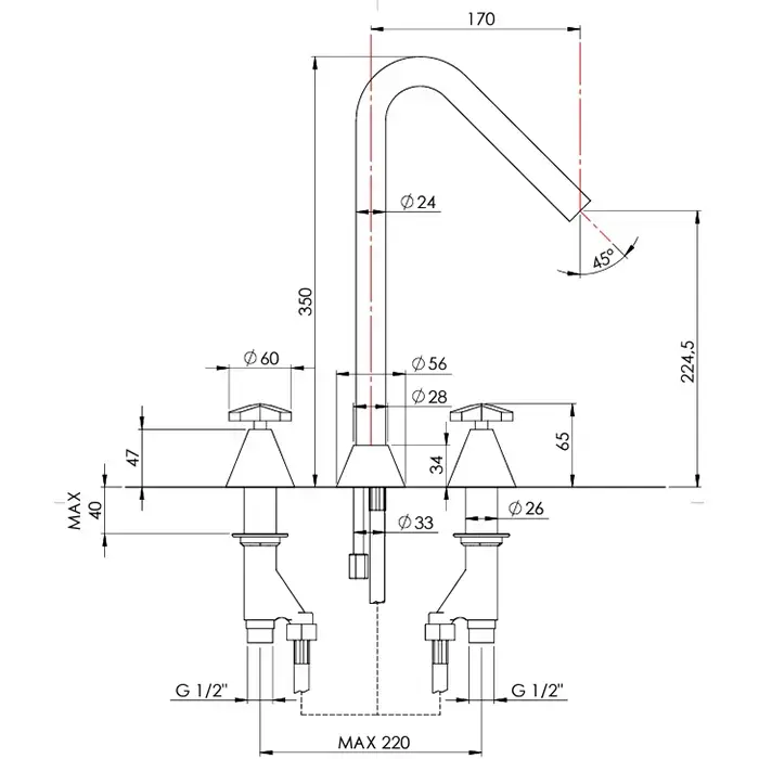 Nicolazzi Flag Смеситель для раковины, встраиваемый, излив: 22см., цвет: хром