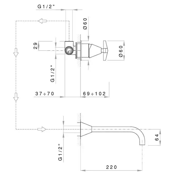 Nicolazzi Flag Смеситель для раковины, встраиваемый, излив: 22см., цвет: хром