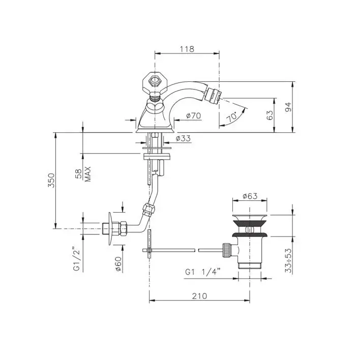 Nicolazzi Teide Chic Смеситель для биде с 2мя ручками, с донным клапаном, излив: 118мм, цвет: хром