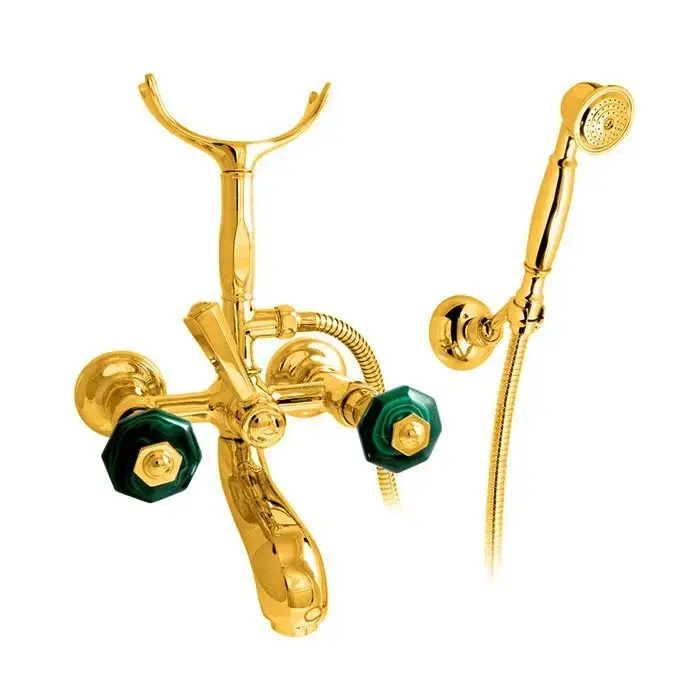 Nicolazzi Teide Chic Смеситель для ванны с 2мя ручками, с переключателем ванна/душ, + комплект руч. душа, цвет: золото