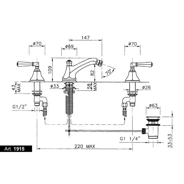 NICOLAZZI TEIDE CRYSTAL Смеситель для биде на 3 отверстия, двухвентильный, в комплекте с донным клапаном, цвет Gold