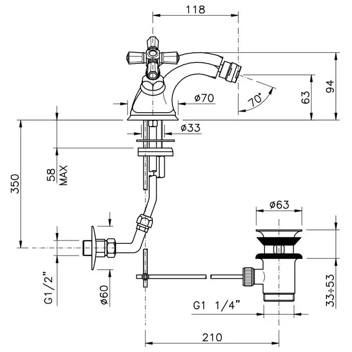 Nicolazzi Teide Four Смеситель для биде с донным клапаном, излив: 118 мм, цвет: хром