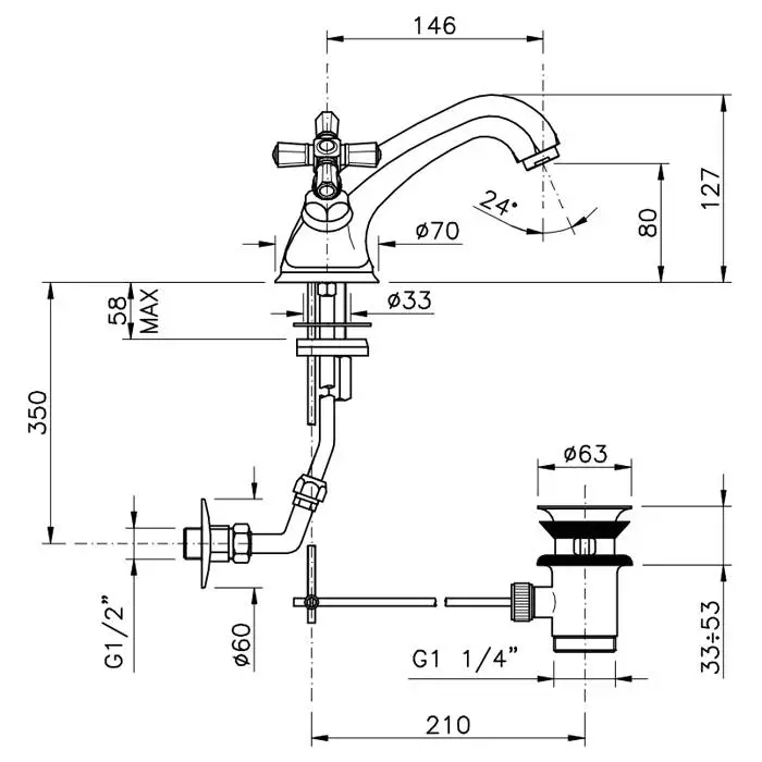Nicolazzi Teide Four Смеситель для раковины на 1 отверстие, с донным клапаном, цвет: бронза