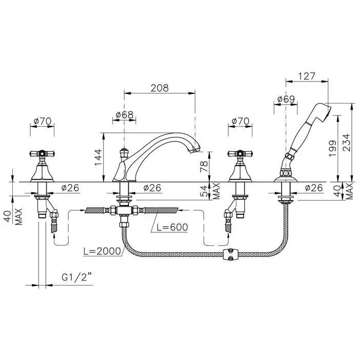 Nicolazzi Teide Foure Смеситель на борт ванны, 4 отв., излив: 223 мм, с ручным душем, цвет: хром