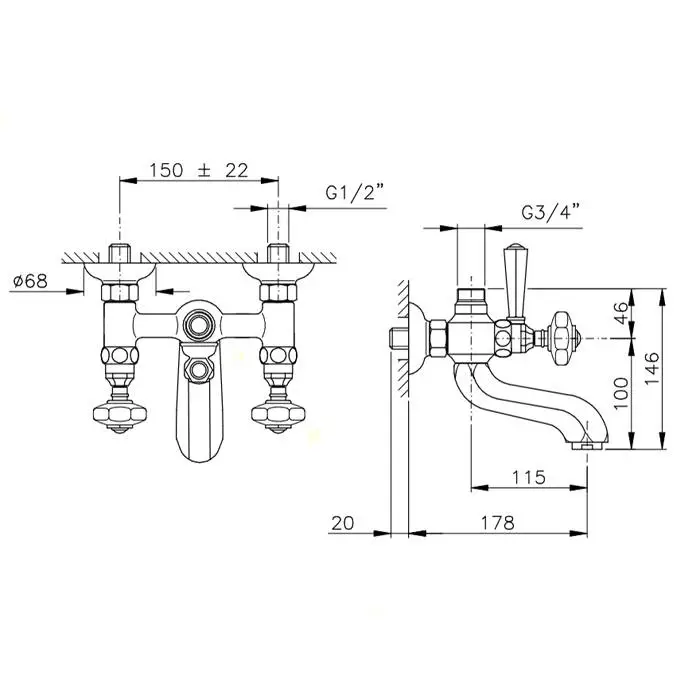 Nicolazzi Teide Смеситель для ванны на 2 отверстия, с переключателем ванна/душ, вывод сверху 3/4" (для душ. стойки), цвет: бронза