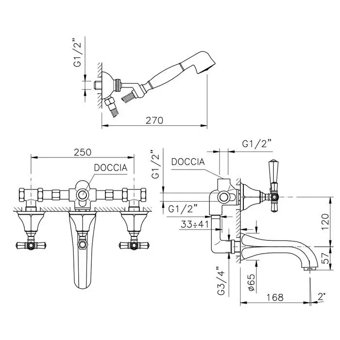 Nicolazzi Teide Смеситель для ванны с 2мя ручками, встроенный, с ручным душем, вкл. внутр часть, излив: 168 мм, цвет: хром