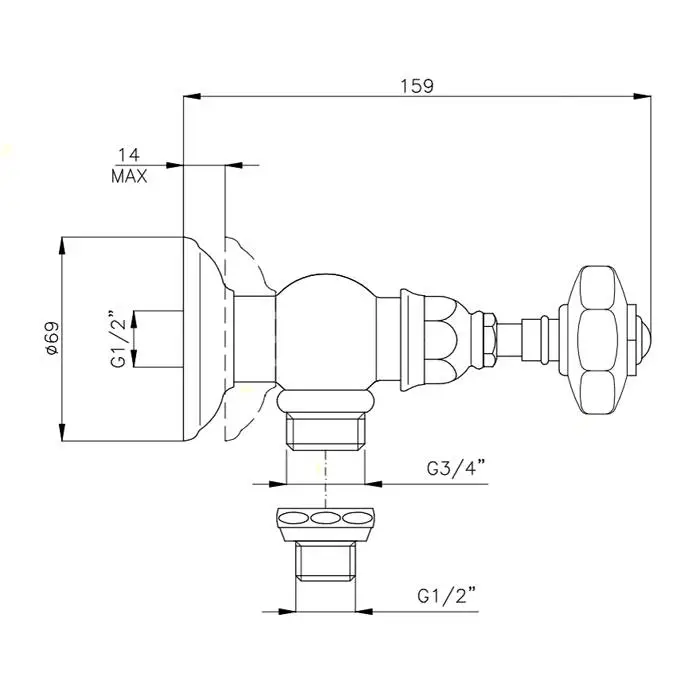 Nicolazzi Teide Вентиль запорный для стиральной машины 3/4, ручки Crystal handle, цвет: хром