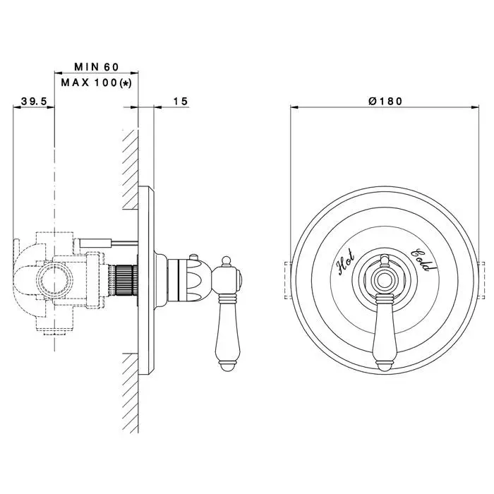 Nicolazzi Внешняя часть термостатического смесителя 3/4" Без запорного вентиля, с хромированной ручкой (№69): , цвет: хром