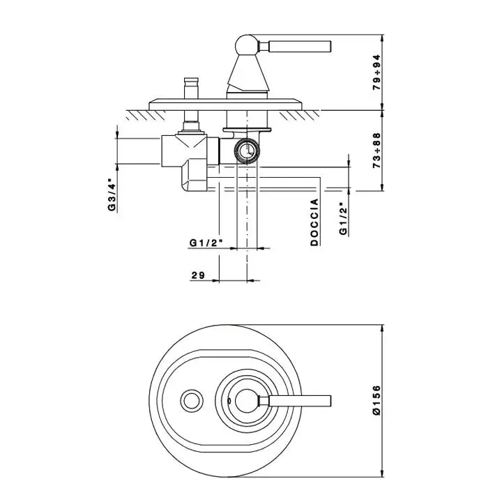 Nicolazzi Torre Смеситель для душа на 2 отверстия, вывод сверху 3/4", цвет: хром