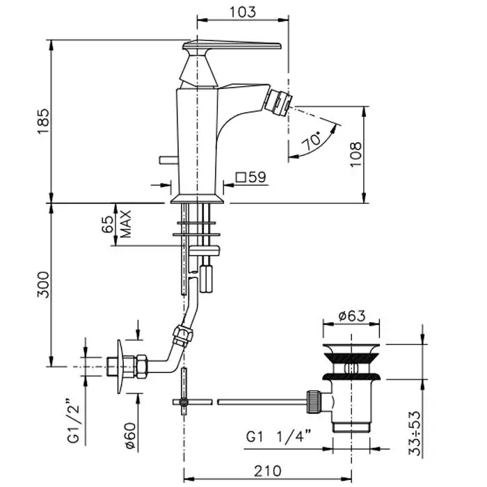 Nicolazzi Vincent Смеситель для биде на 1 отверстие, с донным клапаном, цвет: хром
