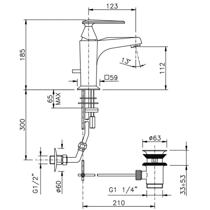 Nicolazzi Vincent Смеситель для раковины на 1 отверстие, с донным клапаном, цвет: хром