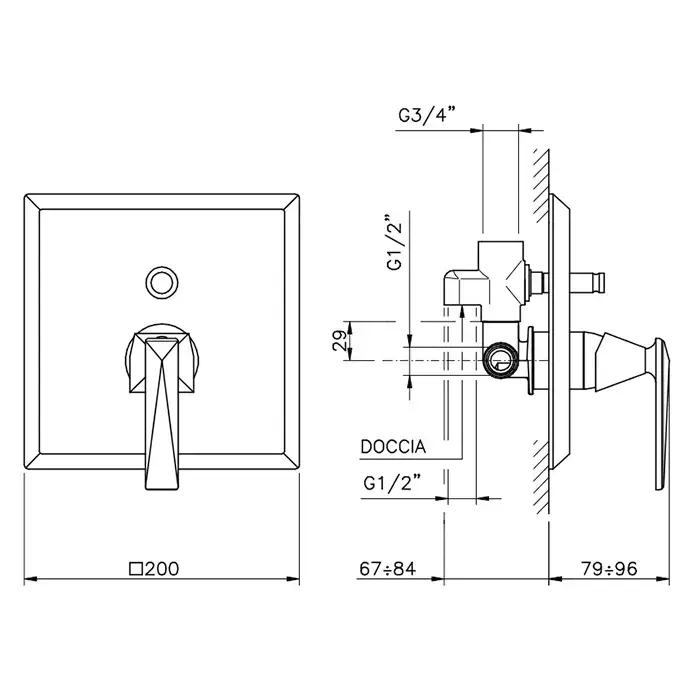 Nicolazzi Vincent Смеситель для ванны на 1 отверстие, встраиваемый, с перекл. для душа (внешняя часть), цвет:ХРОМ