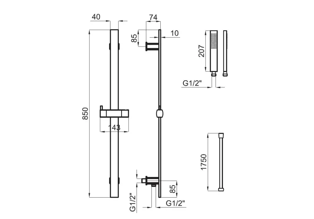 NOKEN CONCEPT Набор для душа с подводом воды, хром
