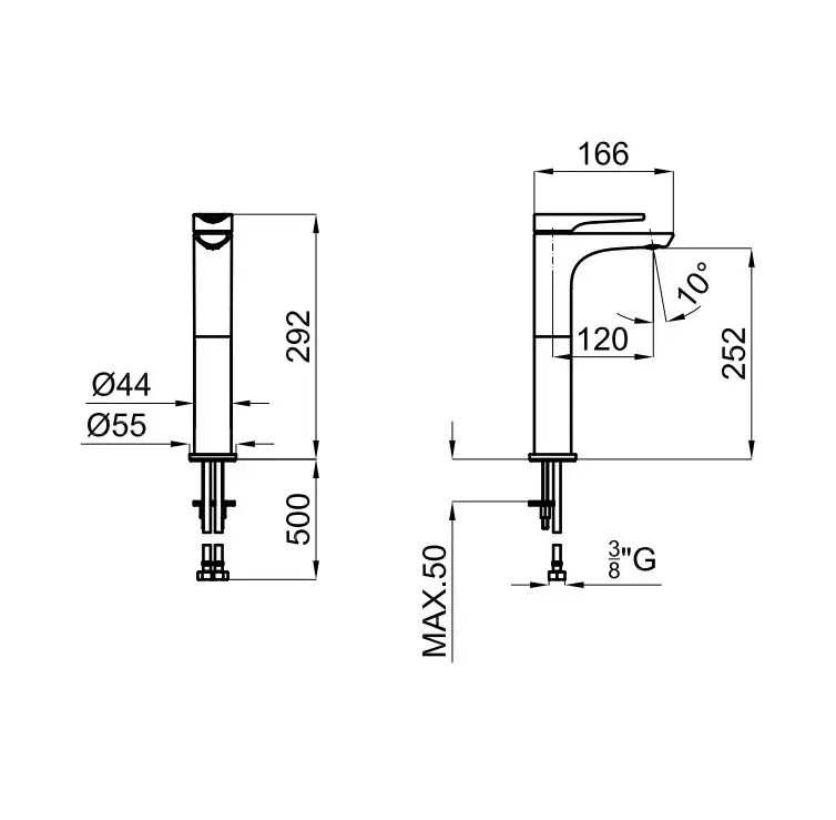 NOKEN CURVE Смеситель для раковины однорычажный с высоким изливом, БЕЗ ДК, Chrome