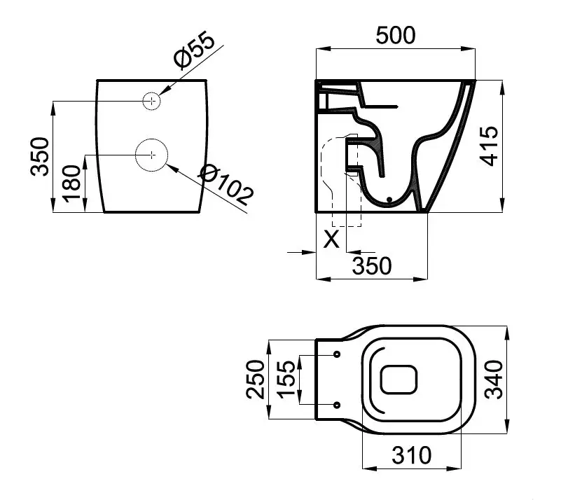 NOKEN ESSENCE C COMPACT Унитаз напольный приставной укороченный, с креплениями, 500х340 мм, белый