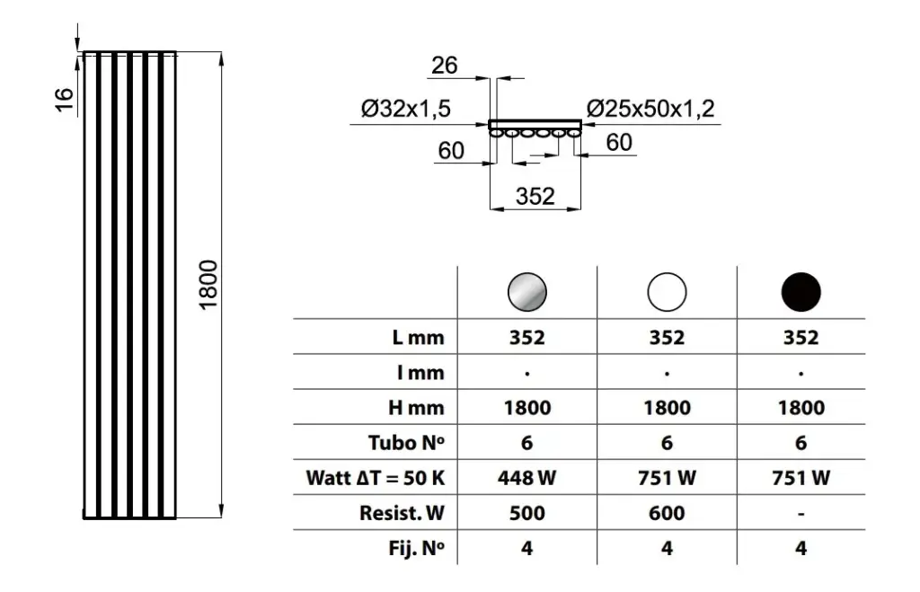 NOKEN ESSENCE C (EL1) Радиатор электрический с резистором 352xH1800 мм, 600W, чёрный