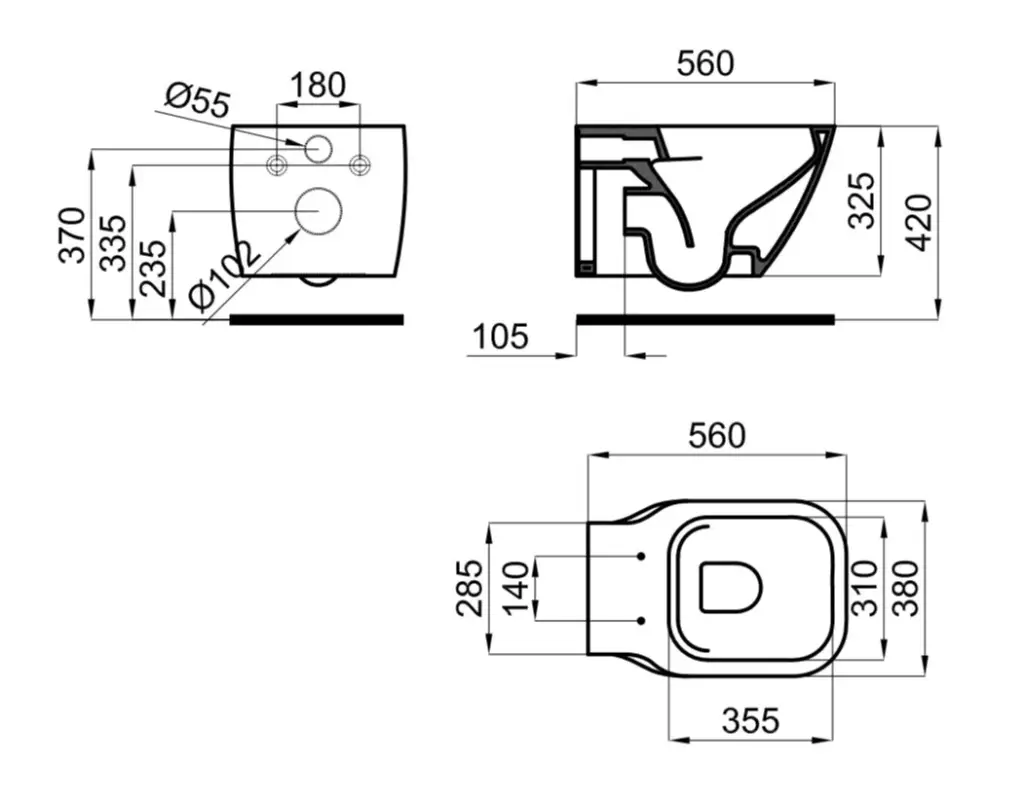 NOKEN ESSENCE C Унитаз подвесной, с креплениями, 560х380 мм, белый