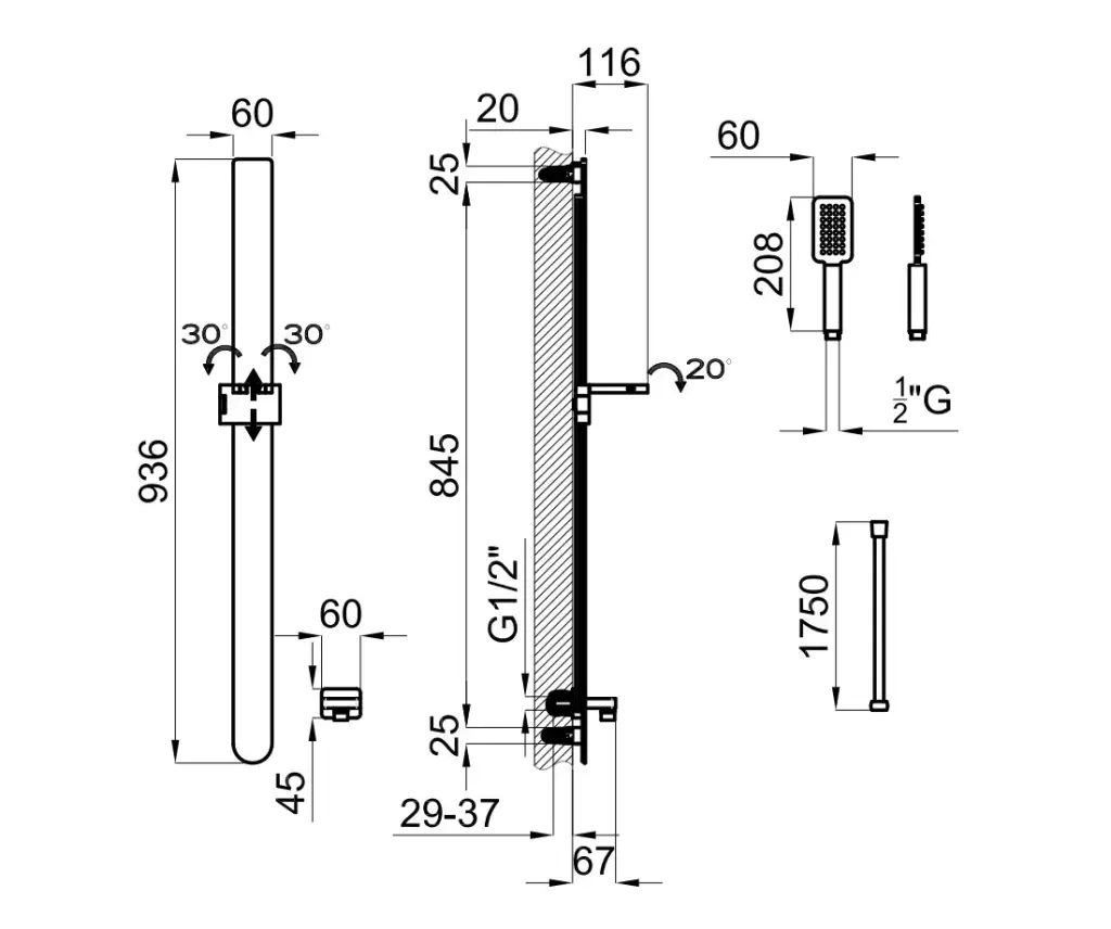 NOKEN FORMA Набор для душа, хром