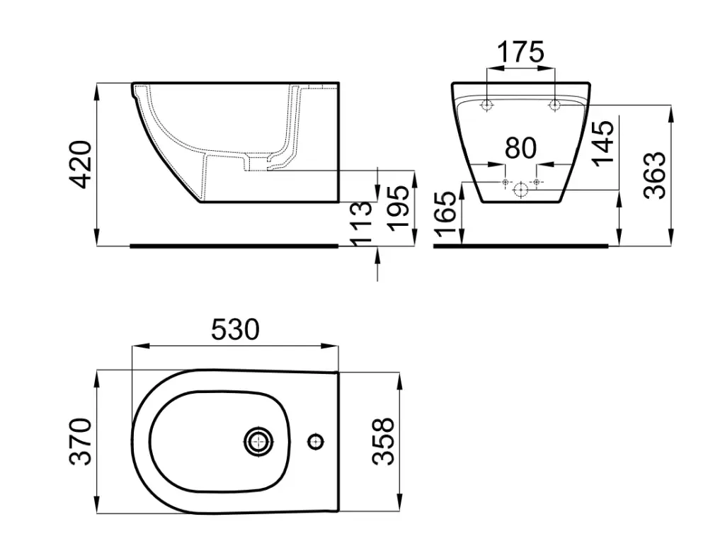 NOKEN GIRO Биде подвесное, 1 отв., с переливом, с креплением, белый