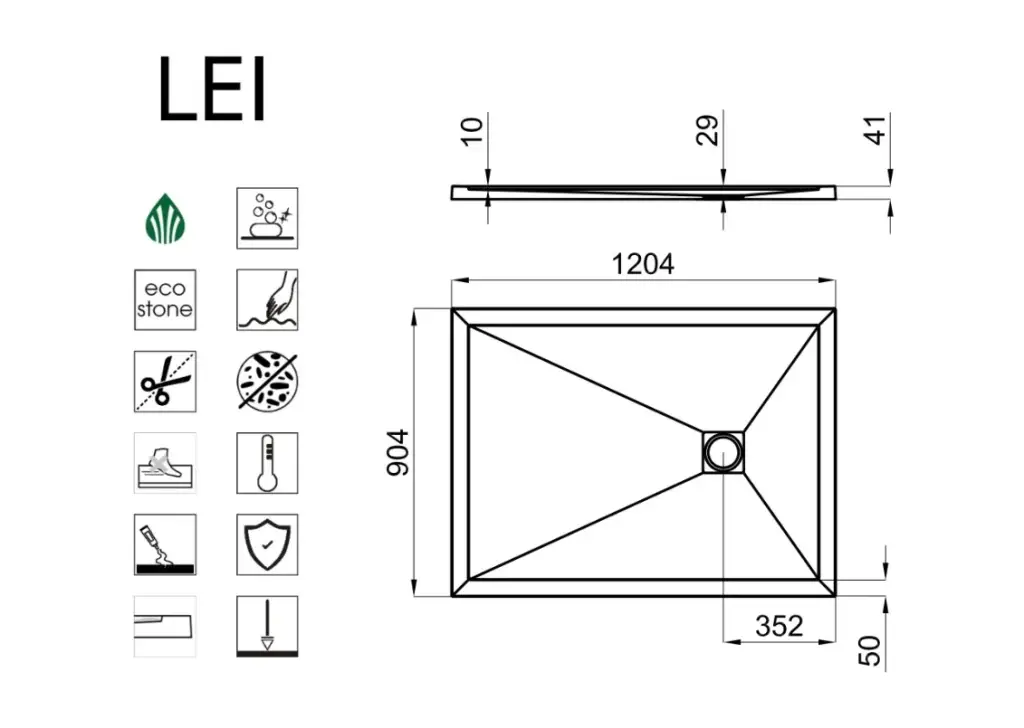 NOKEN LEI Поддон из минерального литья с фактурной поверхностью, 120x90х3,5h см, белый