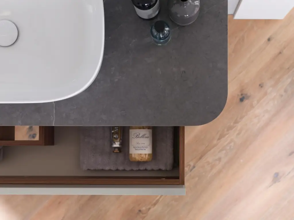 NOKEN LIEM Модуль подвесной для раковины, 82 см, столешница из керамогранита, орех/песок