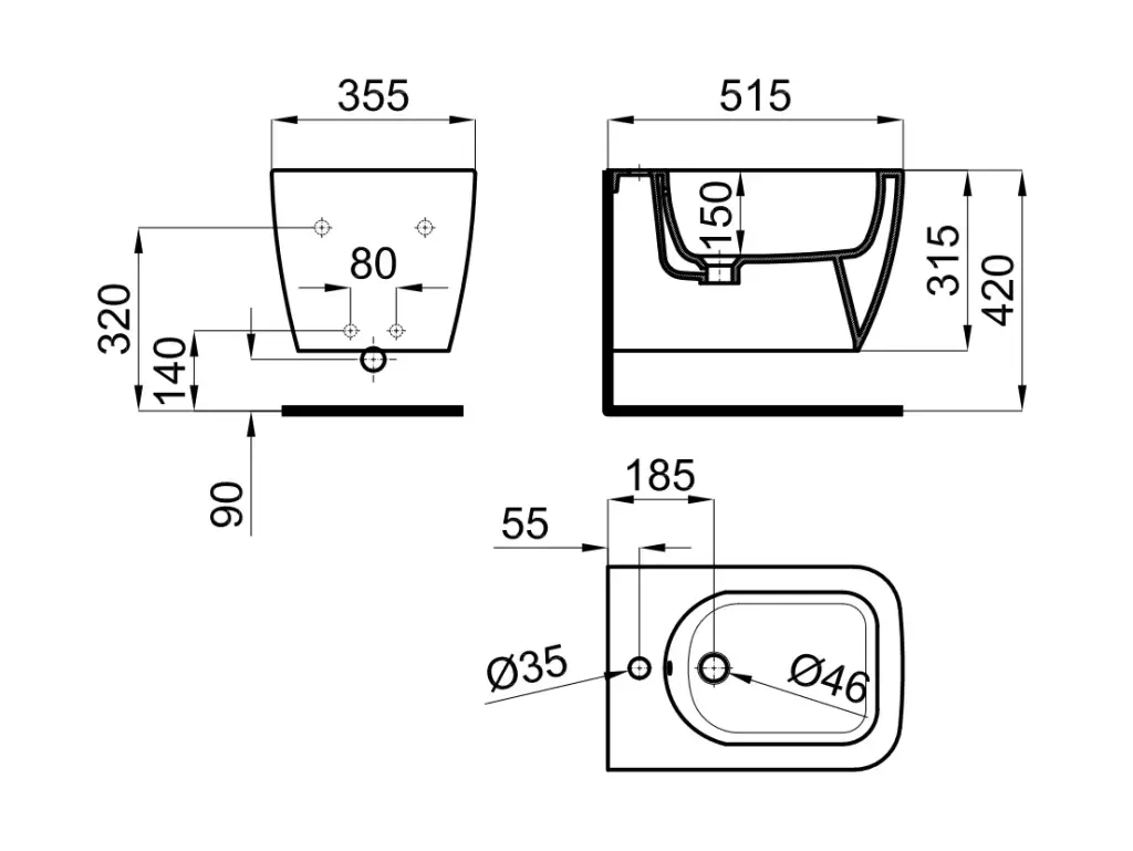 NOKEN LOUNGE Биде подвесное с креплениями, чёрный