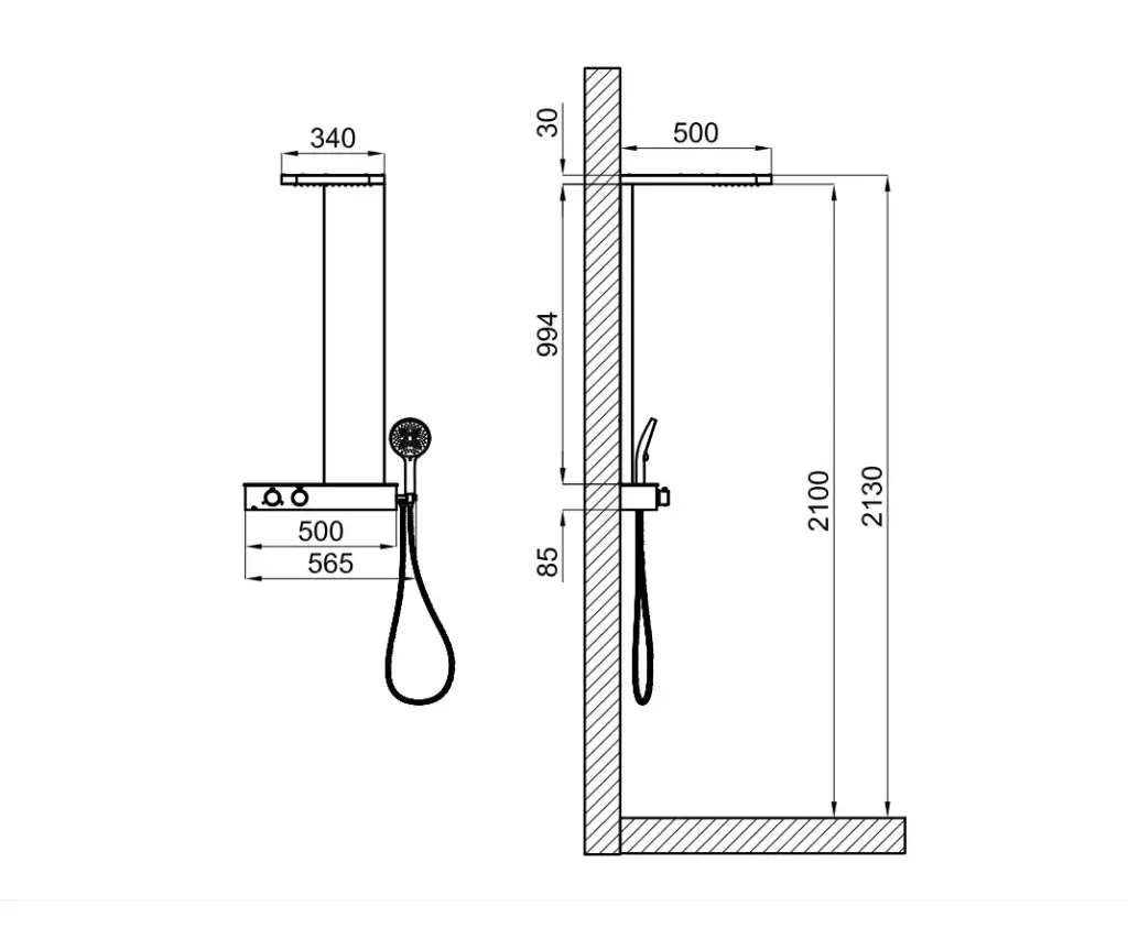 NOKEN LOUNGE Панель для душа с термостатом, верхним и ручным душем, браш. медь
