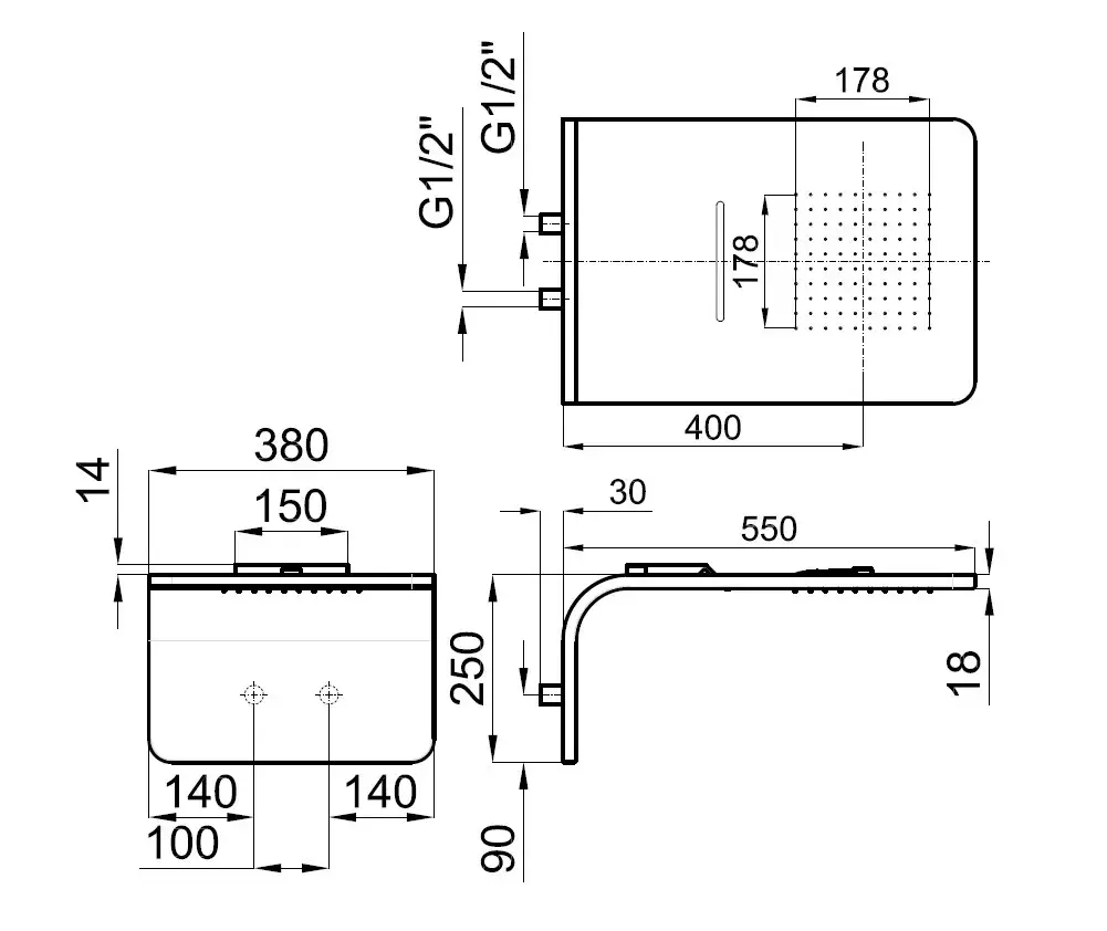 NOKEN LOUNGE Верхний душ с функцией дождевого душа и каскада, 1/2”, медь