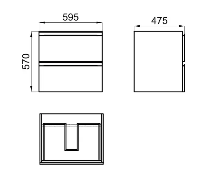 NOKEN MARNE Подвесной модуль 795хH570х475 мм с 2 ящиками, антрацит/ручка алюминий