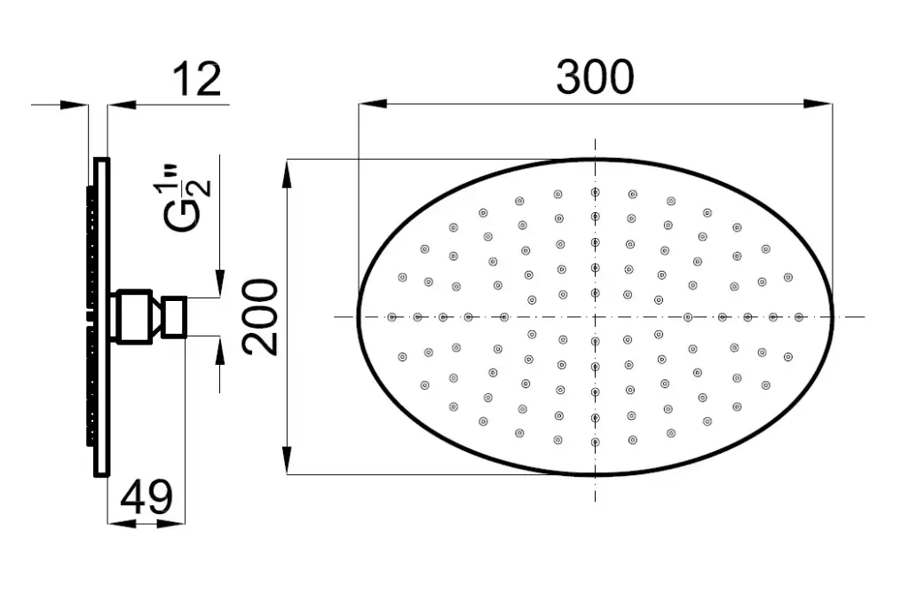 NOKEN NEPTUNE SLIM Верхний душ Oval 30x20 см., с шаровым соединением, хром