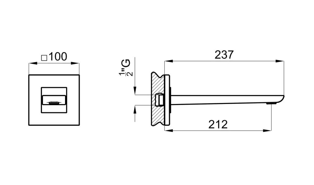 NOKEN OXO Излив для ванны настенный, 18,4 л/мин, вынос 212 мм, xром
