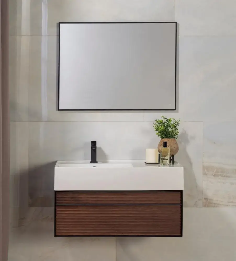NOKEN PACK ESSENCE C Комплект 80 см: зеркало, тумба, раковина, смеситель, белый/чёрный/фасад орех