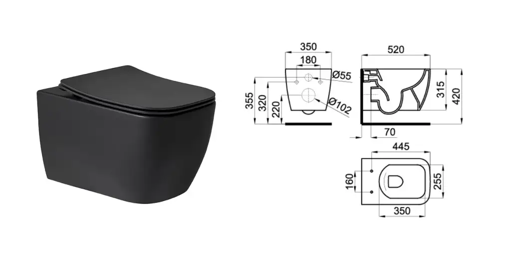 NOKEN PACK LOUNGE NEGRO Комплект: инсталляция, унитаз с сиденьем, клавиша, matt black/marquina stone