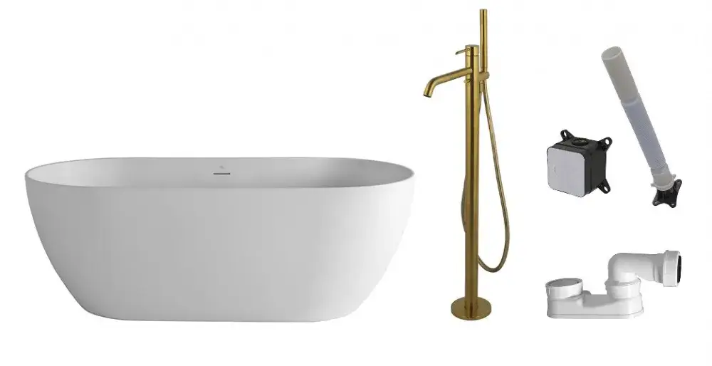 NOKEN PACK LOUNGE Ванна акриловая 170х80х60H см с напольным смесителем, белый матовый/брашир. золото