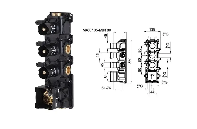 NOKEN PACK OXO Душевой комплект с термостатом, верхний душ, брашированный титан