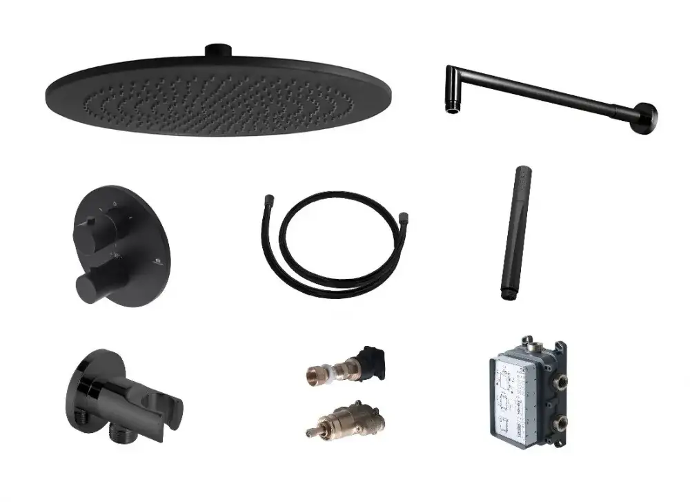 NOKEN PACK RONDO BLACK THERMOSTATIC Душевой комплект с термостатом и верхним душем Ø30 см, черный