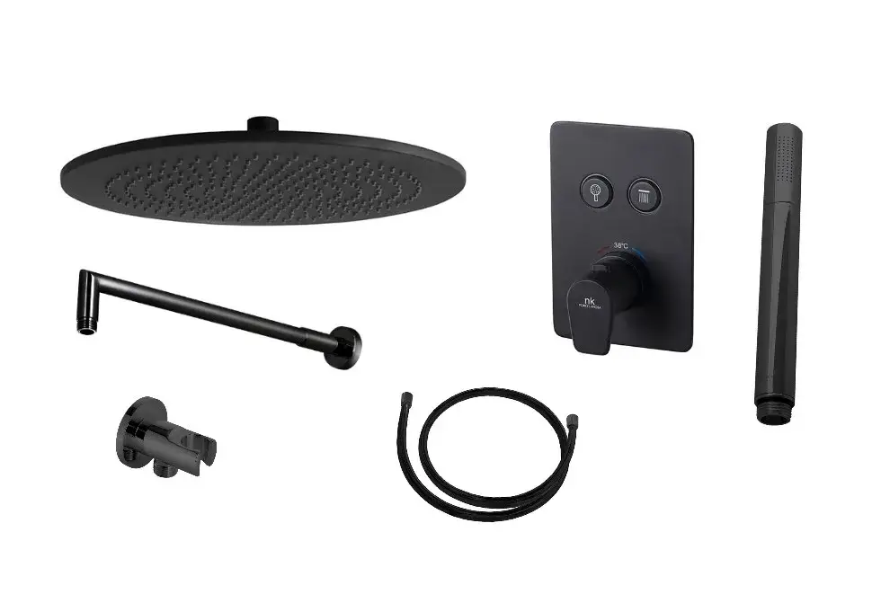NOKEN PACK TOUCH&FEEL RONDO Душевой комплект с верхним душем Ø30 см, термостатом, черный мат