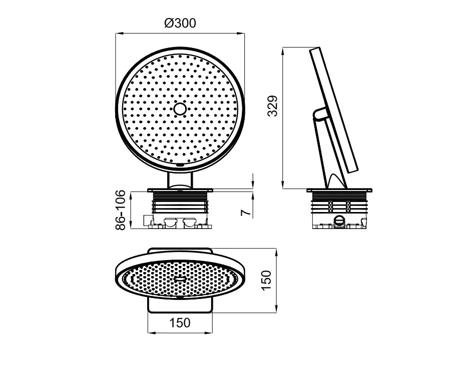 NOKEN PLUMP Верхний душ с держателем 300 мм, 17,52 л/мин., чёрный