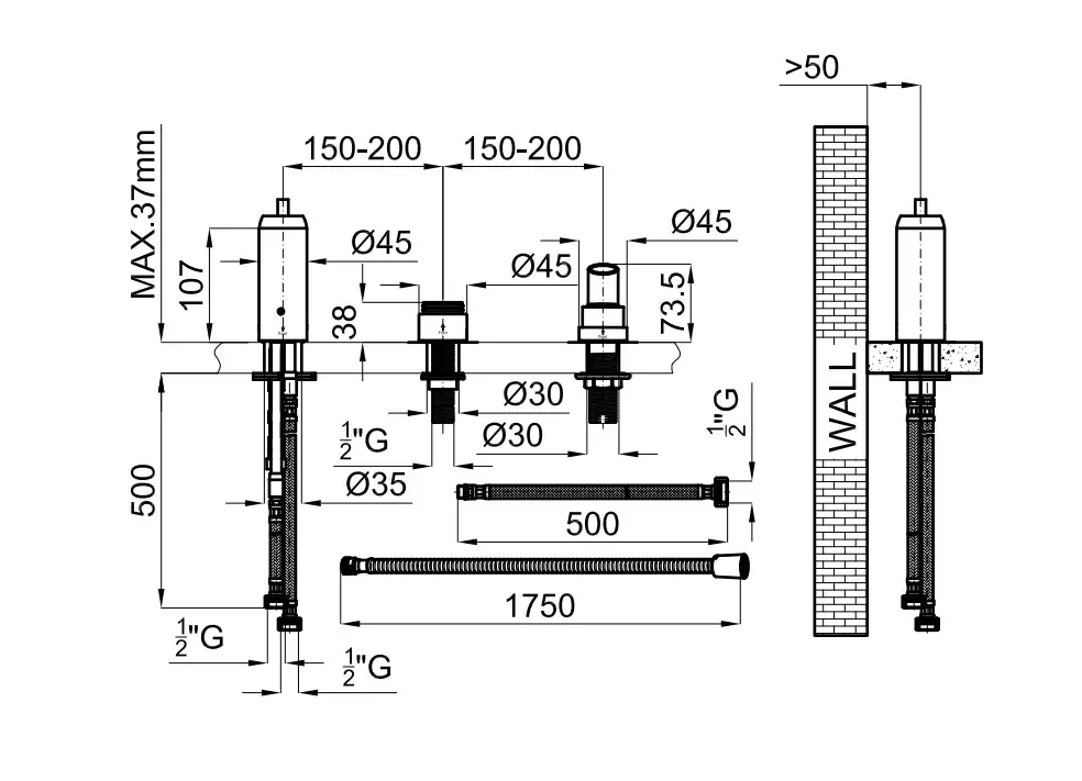 NOKEN PROJECT LINE Внутренний корпус смесителя, установка на ванне, чёрный