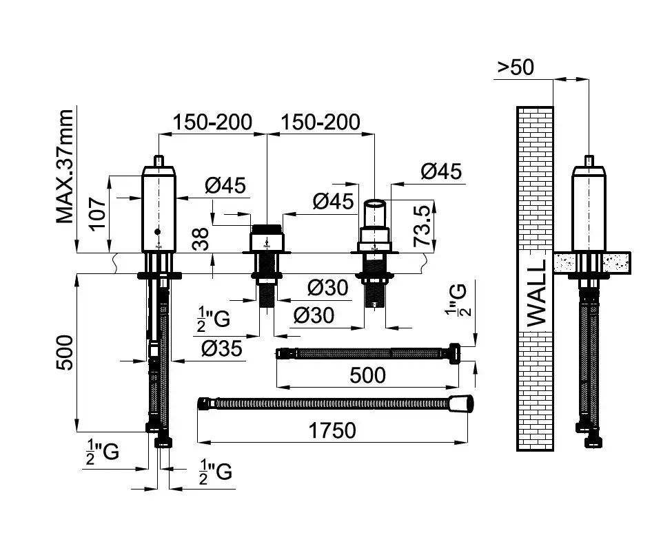NOKEN PROJECT LINE Внутренний корпус смесителя, установка на ванне, хром