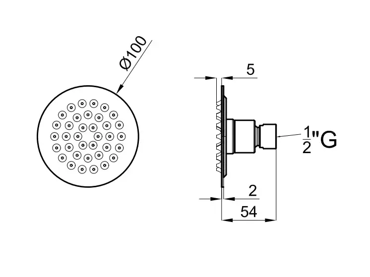 NOKEN ROUND INOX Форсунка с соединениями 1/2 дюйма, 5,5 л/мин, браш. нержавеющая сталь