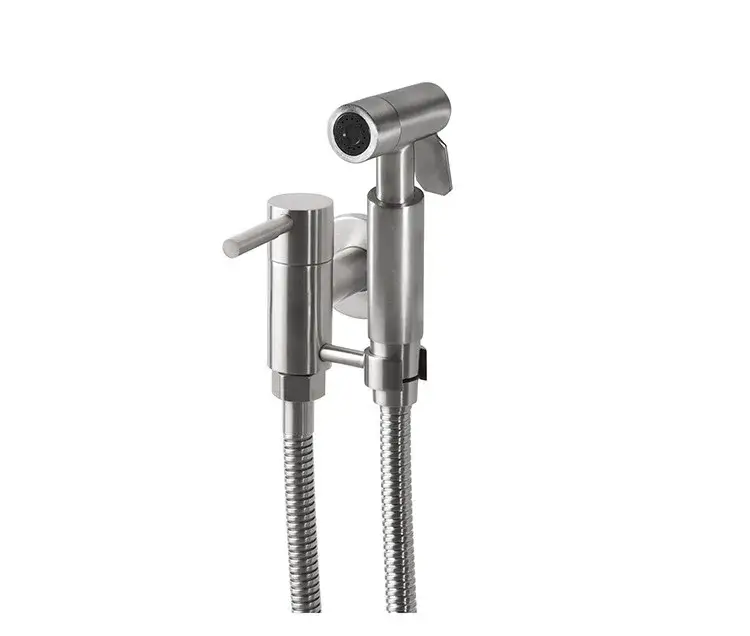 NOKEN ROUND INOX Гигиенический душ с подводкой и держателем, 1220 мм, браш. нержавеющая сталь