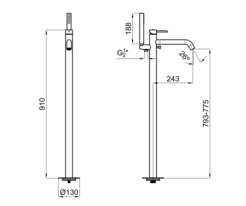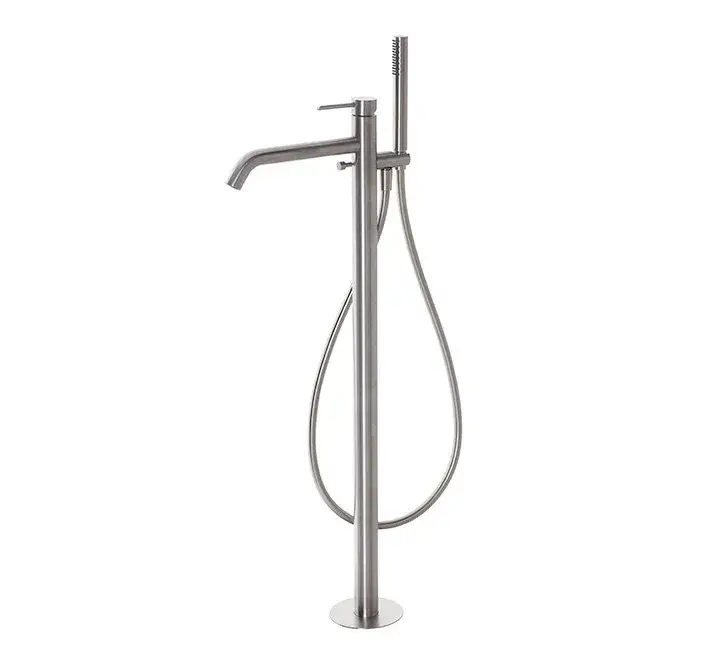 NOKEN ROUND INOX Смеситель напольный с ручным душем, шланг 150 см, браш. нержавеющая сталь