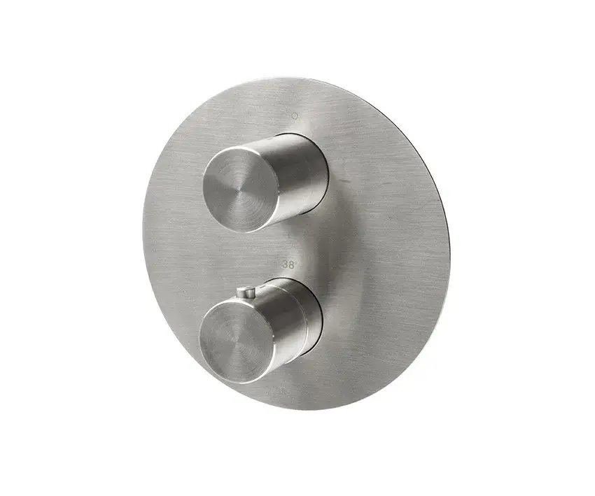 NOKEN ROUND INOX Внешняя часть термостата на 2-3 выхода, браш. нержавеющая сталь