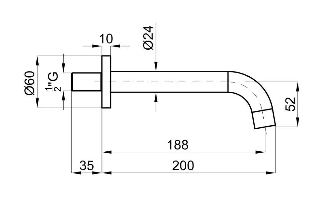 NOKEN ROUND Излив для ванны, при 3 барах 18 л/мин, вылет 188 мм, хром