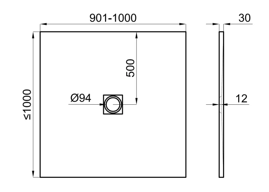 NOKEN SLATE FINISH STUDIO Поддон из минерального литья, A=901-1000xB=920-1000хh30 мм. Спецзаказ!