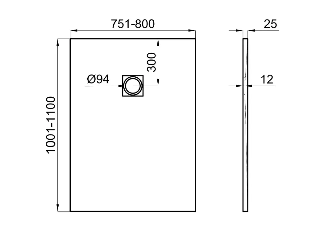 NOKEN SLATE Поддон из минерального литья, A=751-800xB=1001-1100хh30 мм. Спецзаказ!