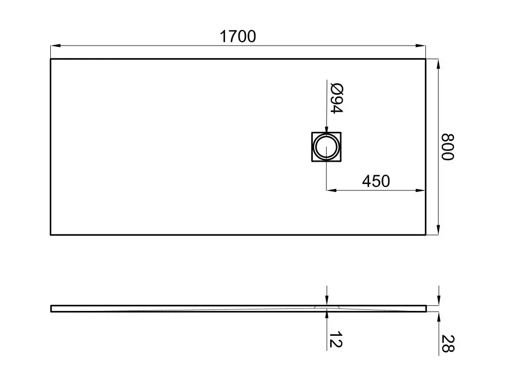 NOKEN SLATE Поддон из минерального литья, A=751-800xB=1001-1100хh30 мм. Спецзаказ!