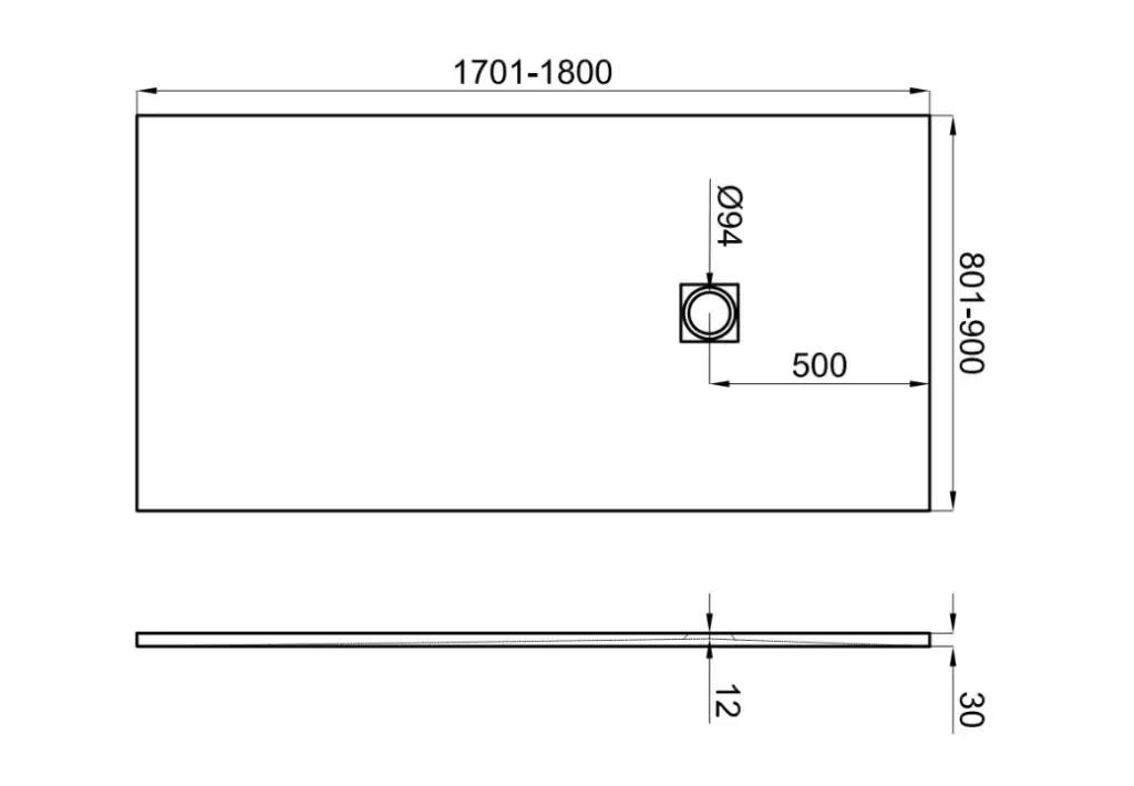 NOKEN SLATE Поддон из минерального литья, A=751-800xB=1001-1100хh30 мм. Спецзаказ!