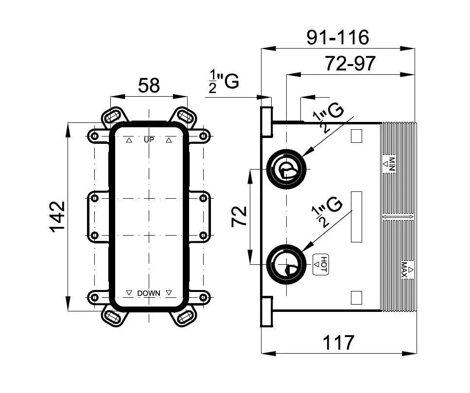 NOKEN SMART BOX VARIO Скрытая часть для смесителя с 2 или 3 выходами, 20,1 л/мин